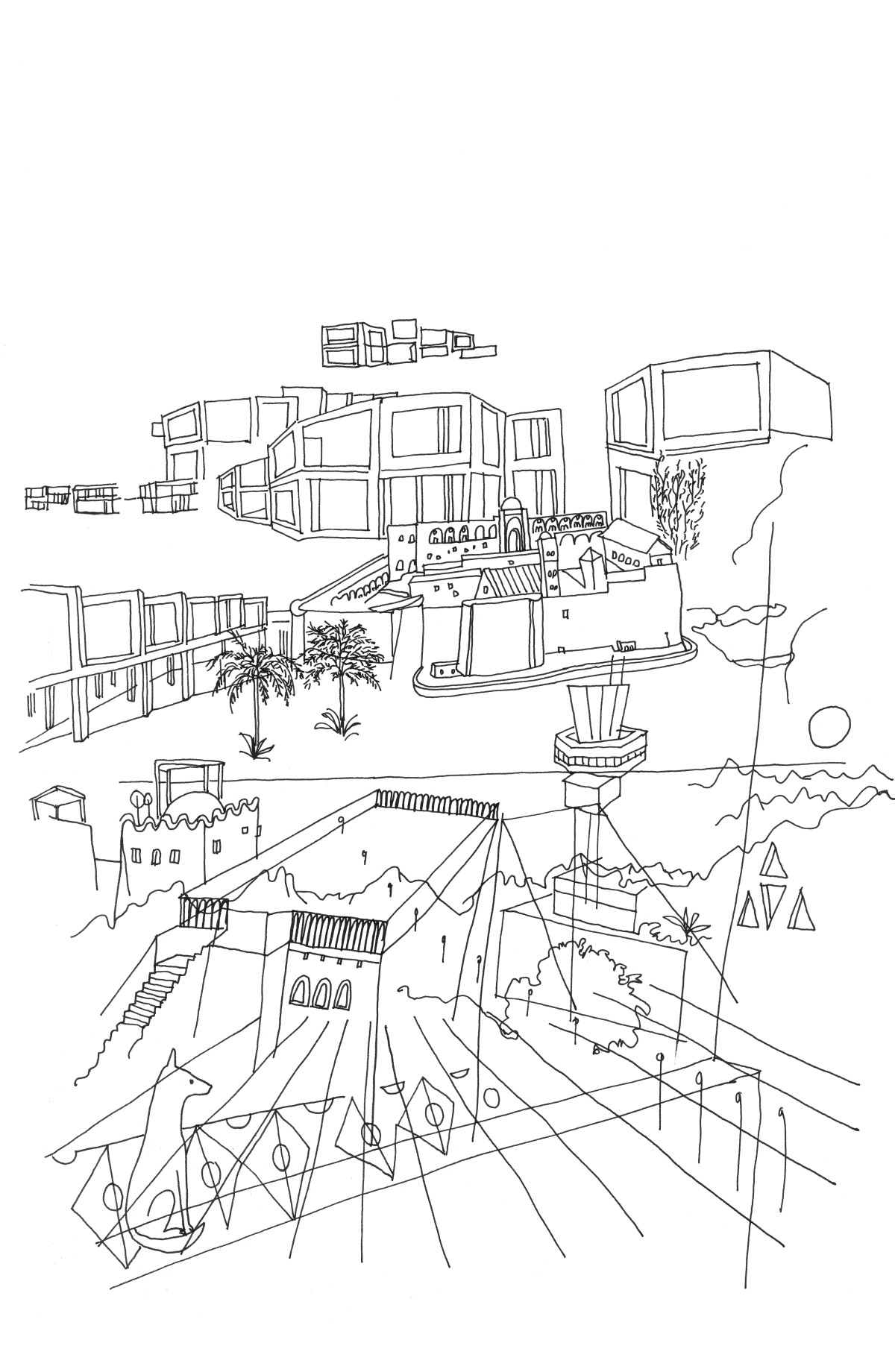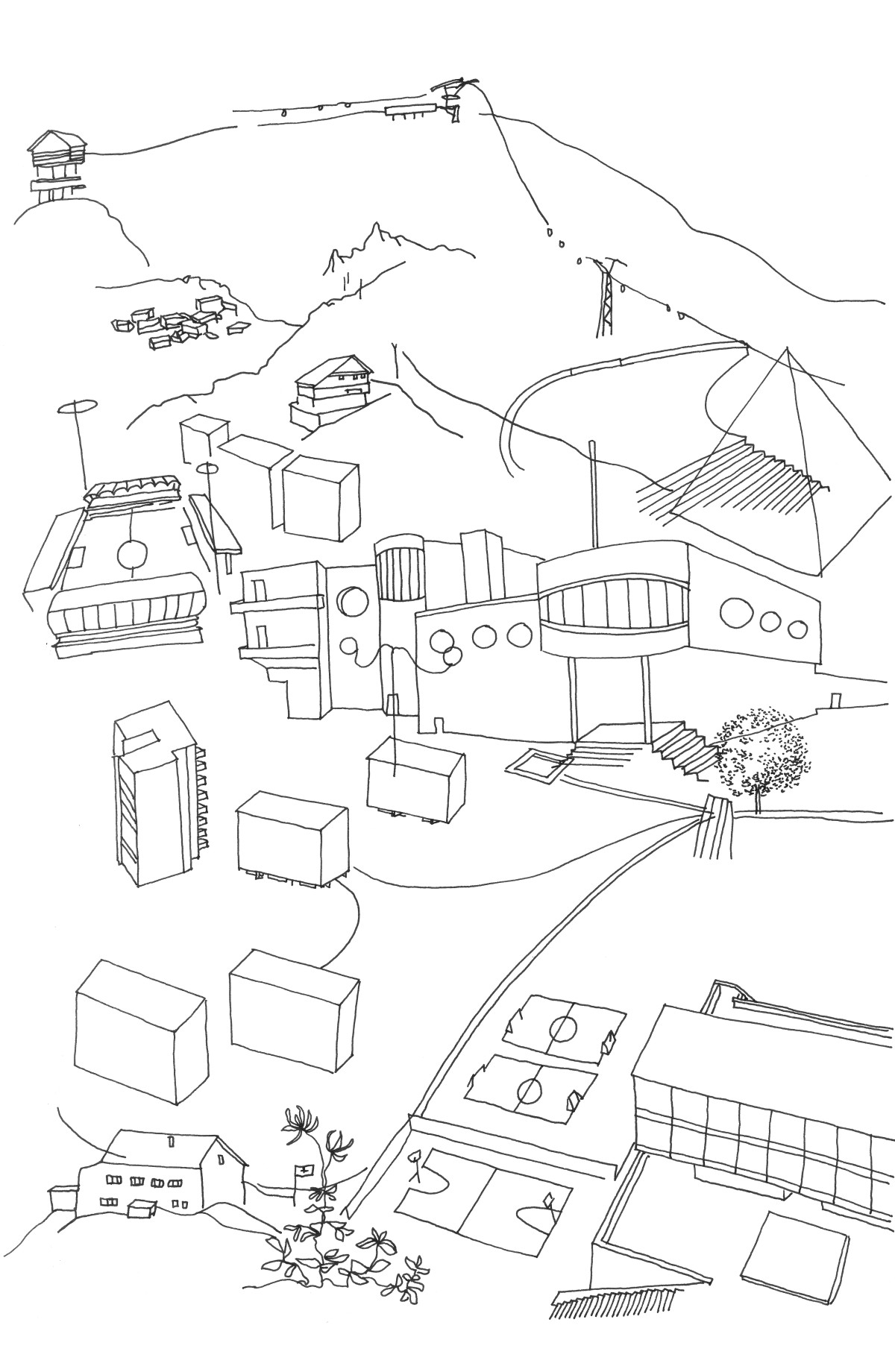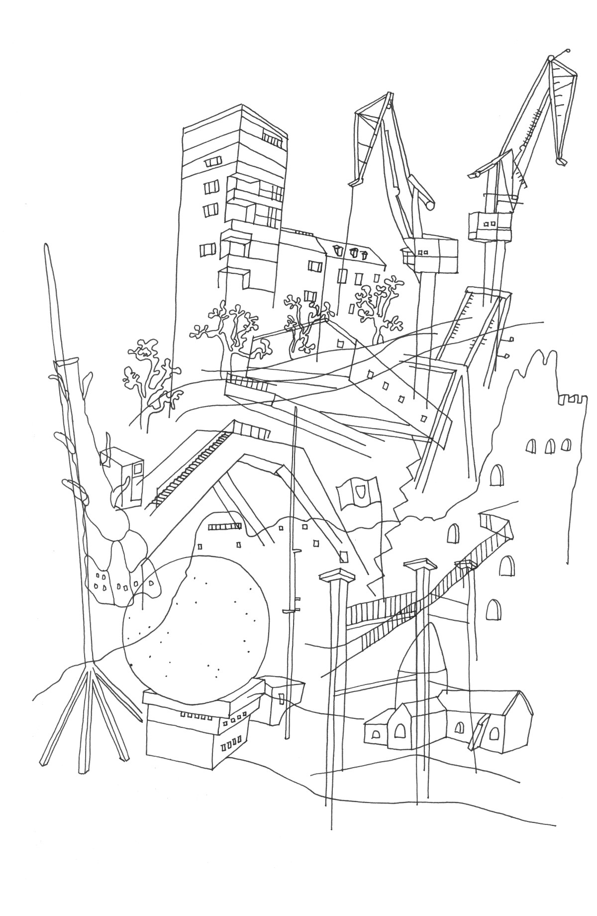 Une longue liste de phrases évoquant des lieux familiers, traversés ou connu a servi de point de départ au travail de dessin. Les représentations d'images mentales des espaces convoqués de la sorte se sont développées à partir de titres suggestifs, treize au total. Lieux qui s'entrecroisent et se superposent ou encore inventaires d'espaces en attente de réappropriation, ce qui permet de créer ainsi de nouvelles histoires, fragmentaires, ouvertes, suggestives.
