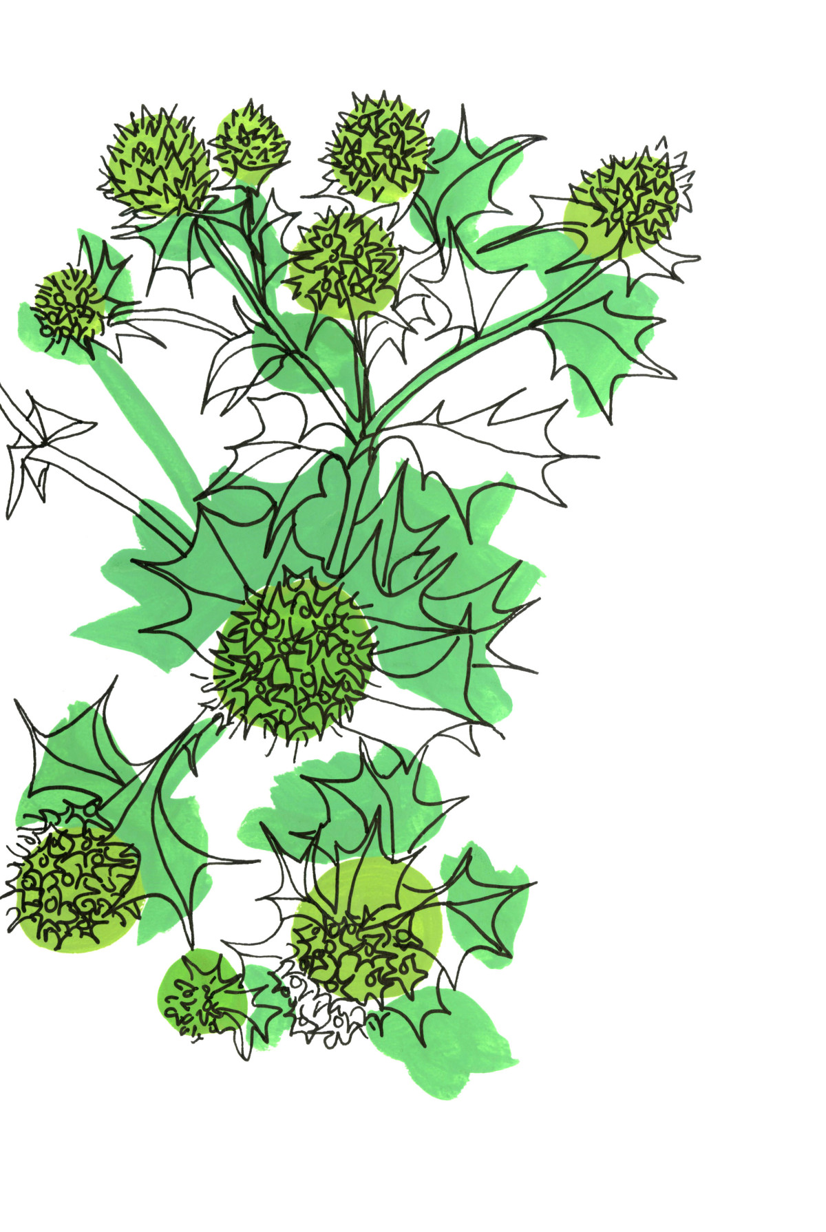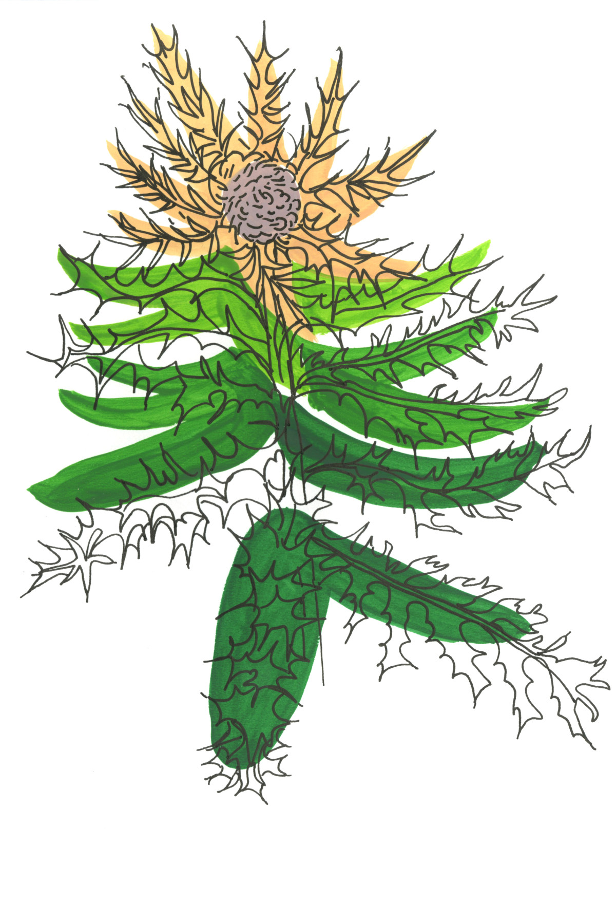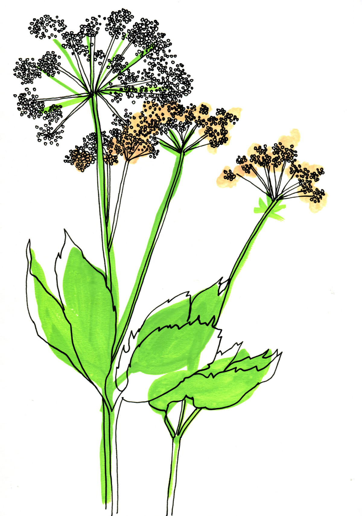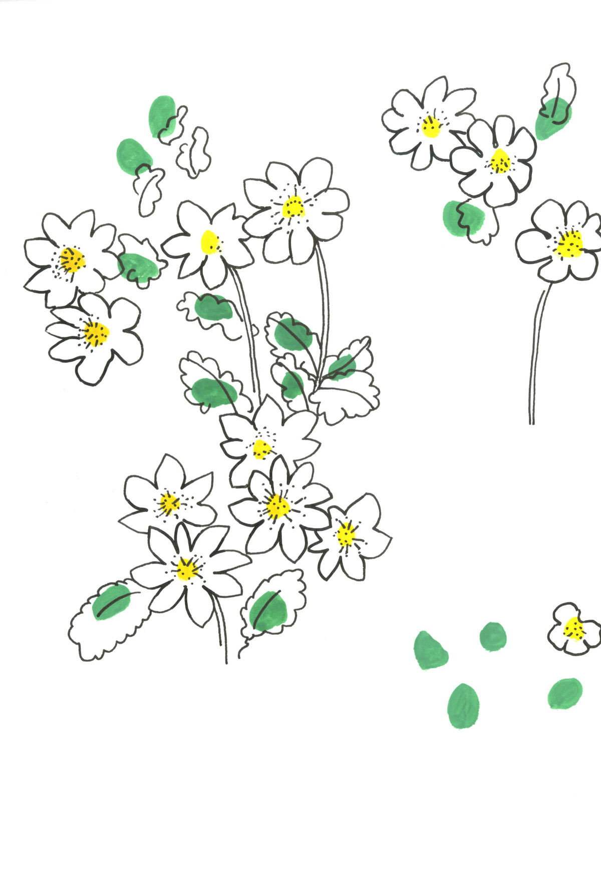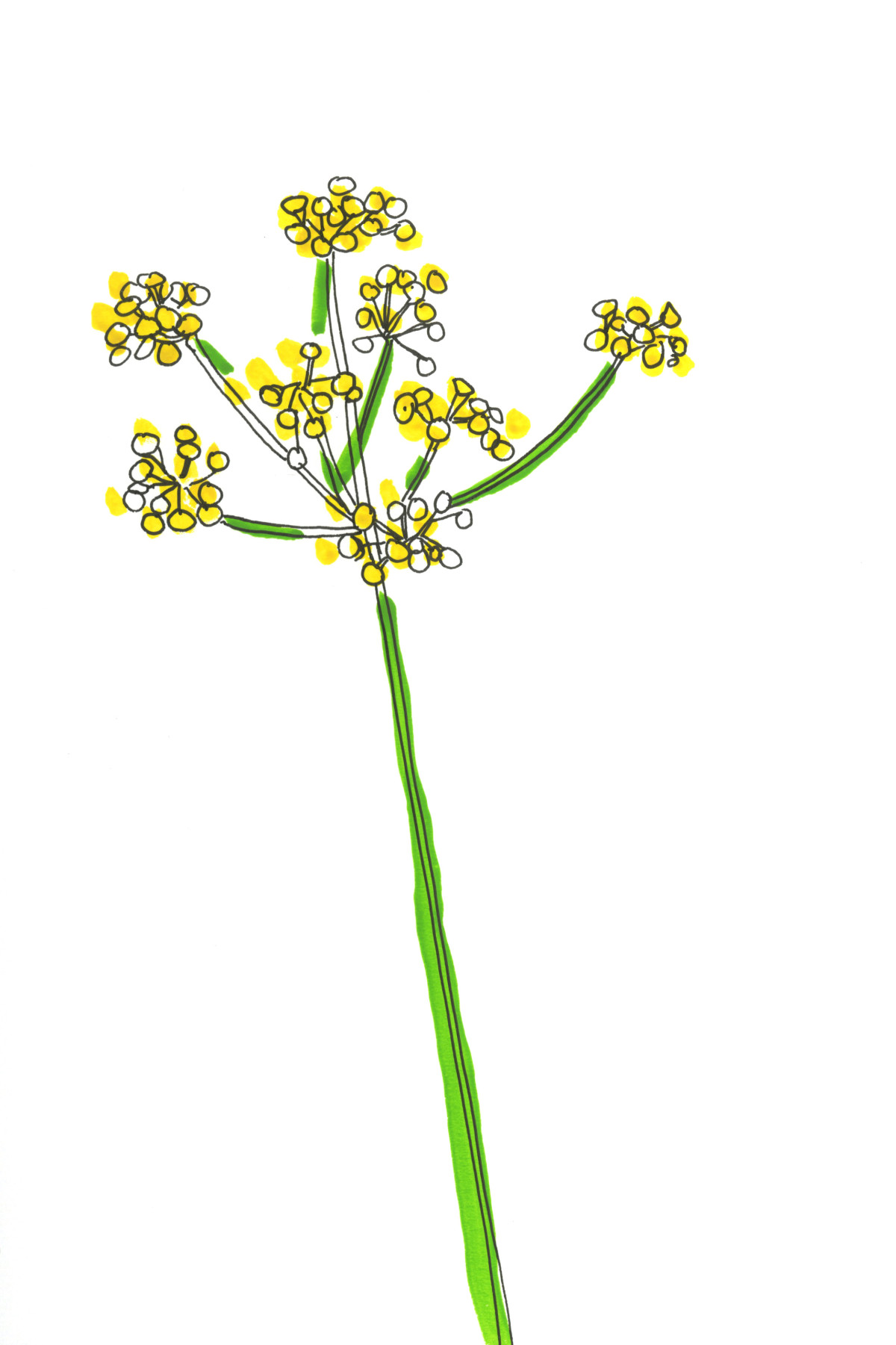 Les dessins de fleurs sont comme une sorte d’herbier surprenant débuté lors d’une résidence artistique à Sion en 2015. Ce travail s’inscrit dans les liens crées entre les randonnées en nature et le dessin. Les fleurs sont photographiées dans leur milieu naturel, puis à partir de ces images, une recherche sur la couleur des fleurs s’effectue comme point de départ. A l’aquarelle, une ou deux nuances de la plante sont déposées sur le papier. Le dessin à la ligne s’inscrit ensuite directement mettant en évidence l’aspect graphique des plantes.Des décalages entre les surfaces colorées et les lignes à l’encre de Chine se produisent donnant à cet «herbier» un caractère singulier.