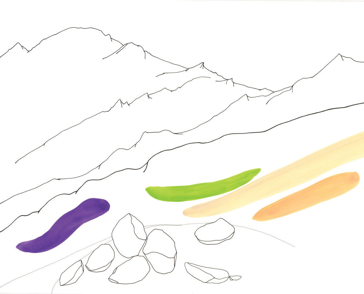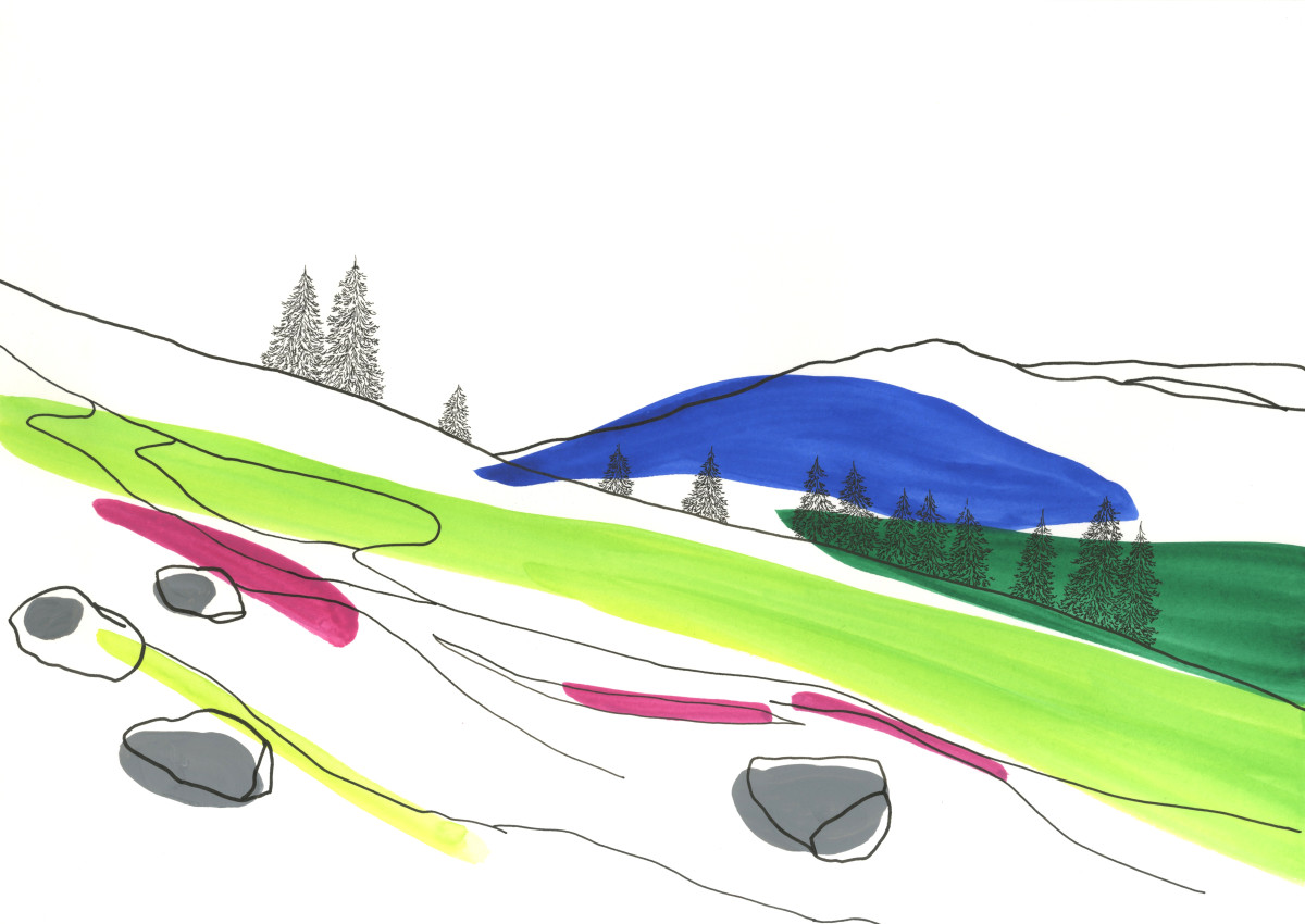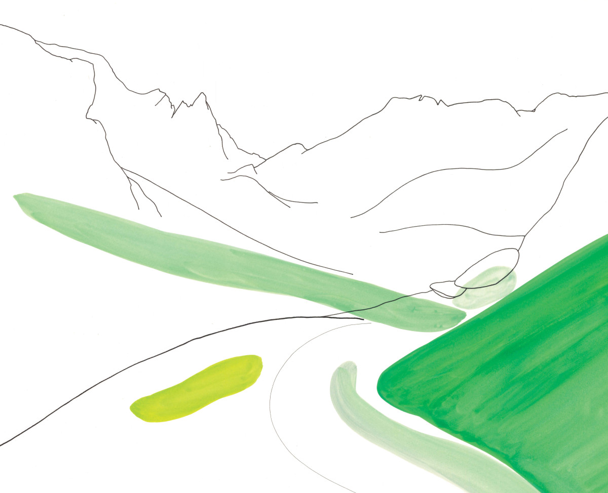 Choisir une destination · S’échapper de la ville · Partir avec la bonne «altitude» · S’imaginer au sommet · Prévoir la distance · S’équiper d’une carte · S’embarrasser d’un sac trop lourd · Rouler sans perdre patience · Quitter les routes fréquentées · Arriver à destination · Commencer son cheminement · Mettre un pied devant l’autre · Sentir son corps · Rythmer sa respiration · Marcher et ne plus y penser · Progresser et penser autrement · Libérer ses pensées · Guetter les oiseaux · Regarder à travers les branchages · Percevoir le chant du casse-noix · Sourire et se détendre · Relâcher les muscles de son visage · Cueillir une fleur du regard · Reconnaître une grande astrance · Repartir en avant · Tomber sur une vipère pléiade · Frémir un court instant · Jouir d’une rencontre inattendue · Prendre une photo floue · Avancer à nouveau · Se retourner intuitivement · Découvrir une vaste étendue · Contempler les montagnes et le ciel · Exercer ses yeux · Suivre la ligne de crête · Admirer le paysage · Grimper quelques mètres · S’accrocher aux rochers · Caresser les pierres · Introduire sa main dans une faille · Recevoir de l’énergie · Atteindre le sommet · S’immobiliser en regardant le vide · Écouter le bruit du vent · Manger un œuf un peu trop dur · S’interdire de partager son casse-croûte avec un chocard · Voir avec son corps · Déplacer son attention · Serpenter dans l’espace · Rassembler les sentiments du proche et du lointain · Décaler le regard · Penser comme une montagne · Trouver des lignes harmonieuses · Repérer des points de vue · Faire partie · Se souvenir des moments partagés · Repenser à toutes les autres fois · Retracer des lignes · Rendre compte d’une expérience · Interpréter le monde qui nous entoure · Évoquer des rapports à l’espace · Dessiner librement des perceptions · Oublier les limites ·