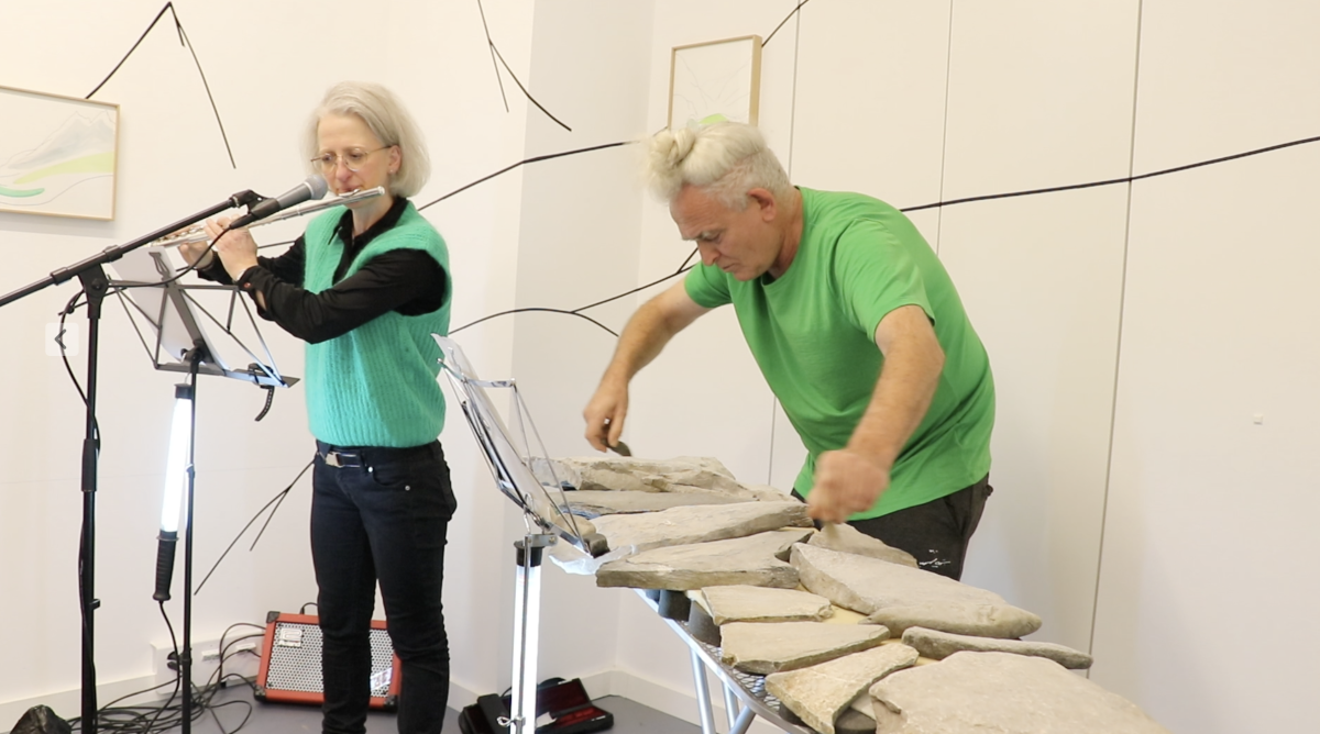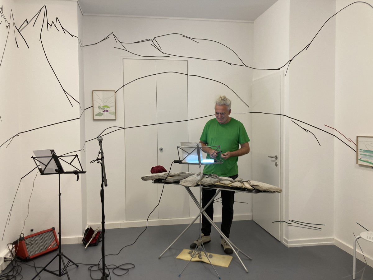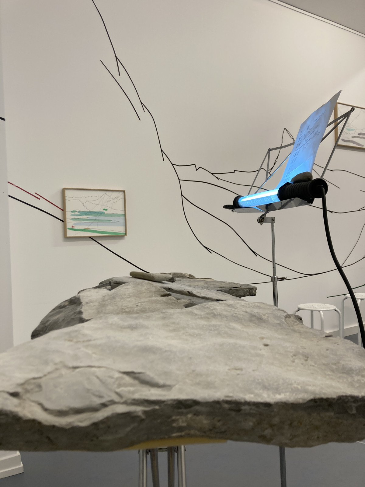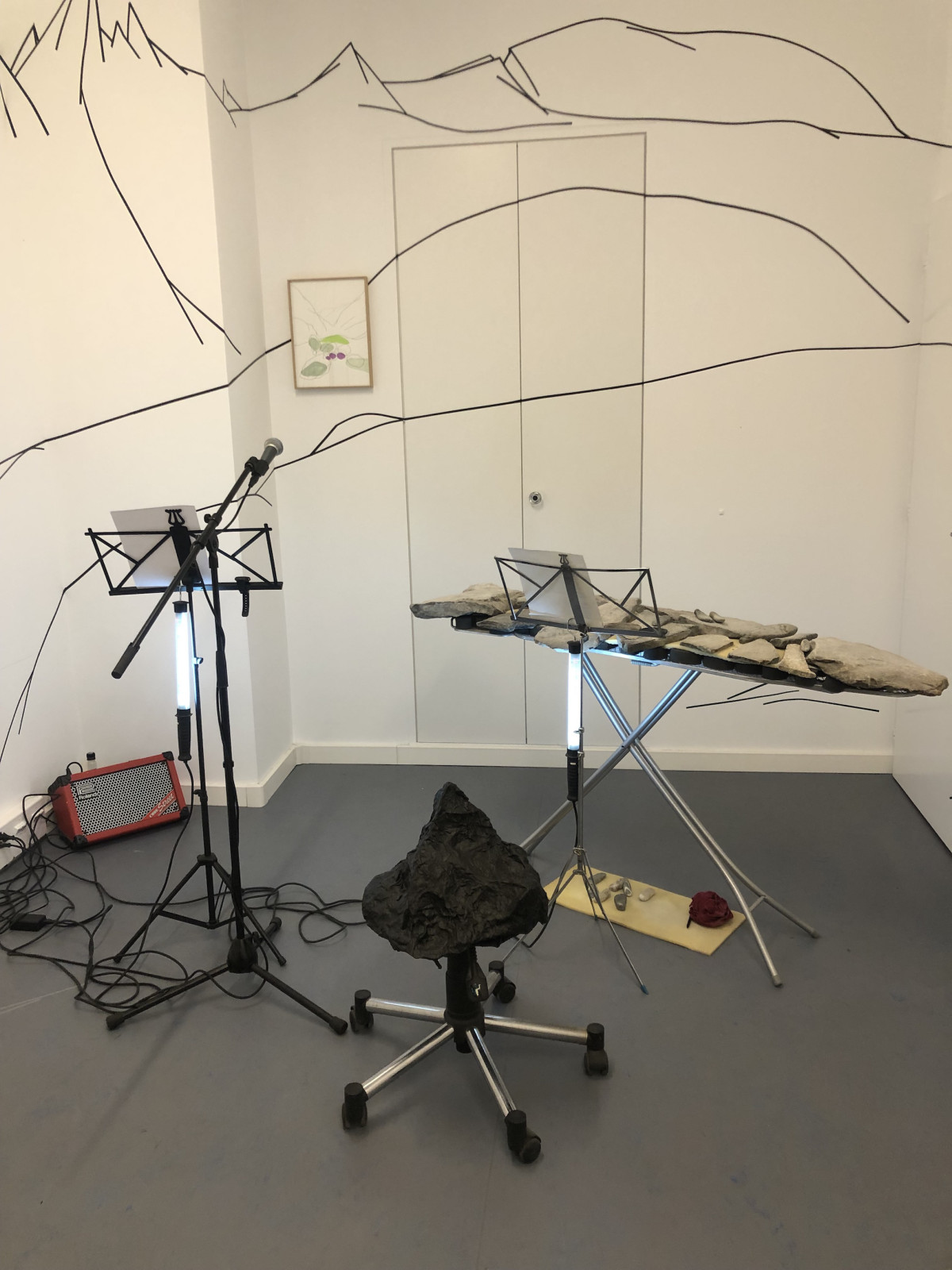 Installation, walldrawing Pascale Favre. Pierres sonores, Thomas Schunke